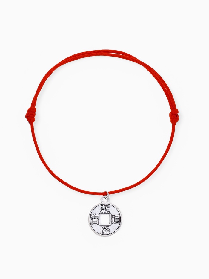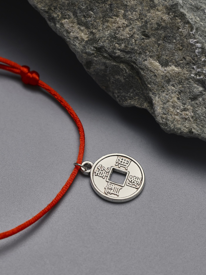 Браслет-оберег "Красная нить" денежная, цвет чернёное серебро, d=8 см