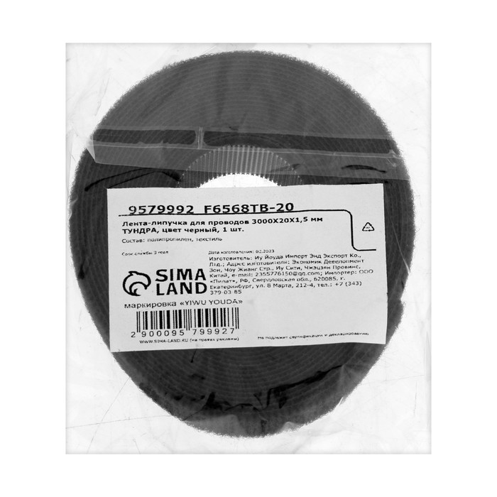 Лента-липучка для проводов 3000Х20Х1,5 мм ТУНДРА, цвет черный, 1 шт. за 200.00 ₽ Купить оптом и в розницу на tijorat.com | Быстрая доставка | скидки