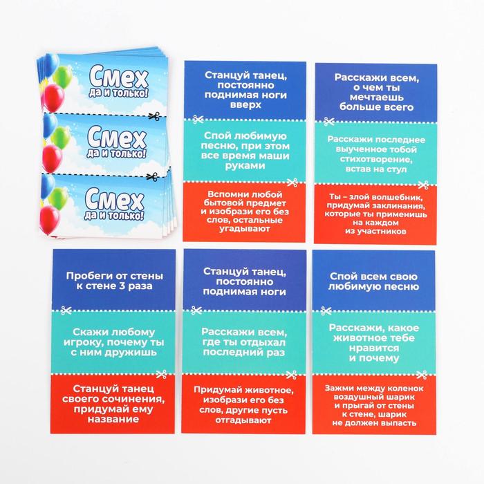 <h2 class="h4">Больше улыбок! </h2>Для игры вам понадобятся воздушные шарики — возьмите их, а внутрь положите карточки из набора. Разбросайте шары по всей комнате и завяжите ребятам глаза. Их задачей будет найти на ощупь шарик, лопнуть его и выполнить весёлое задание.