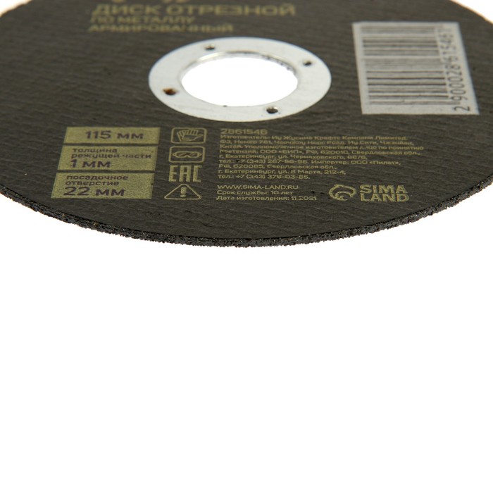 Круг отрезной по металлу ТУНДРА, армированный, 115 х 1.6 х 22 мм