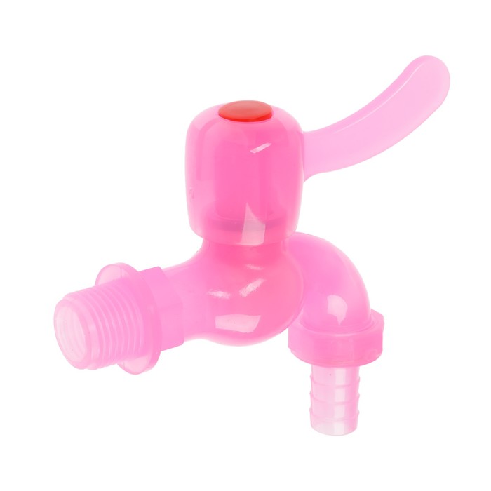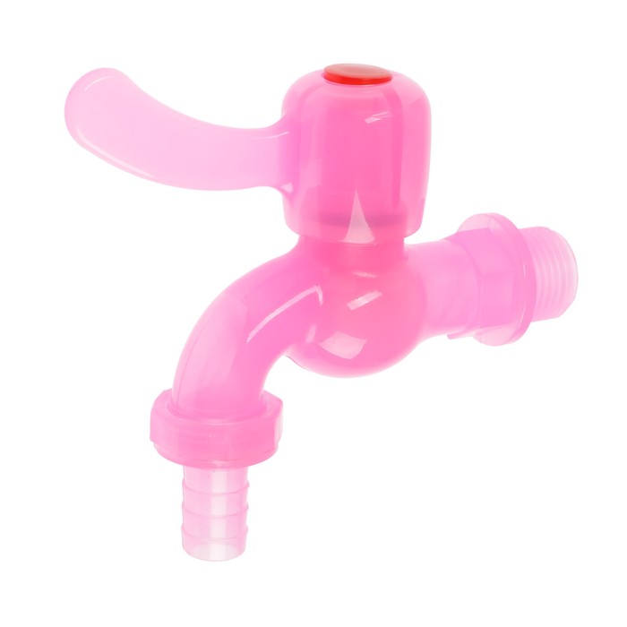 Кран водоразборный ZEIN, со штуцером, с плоской ручкой, PP, с шаровым механизмом, розовый