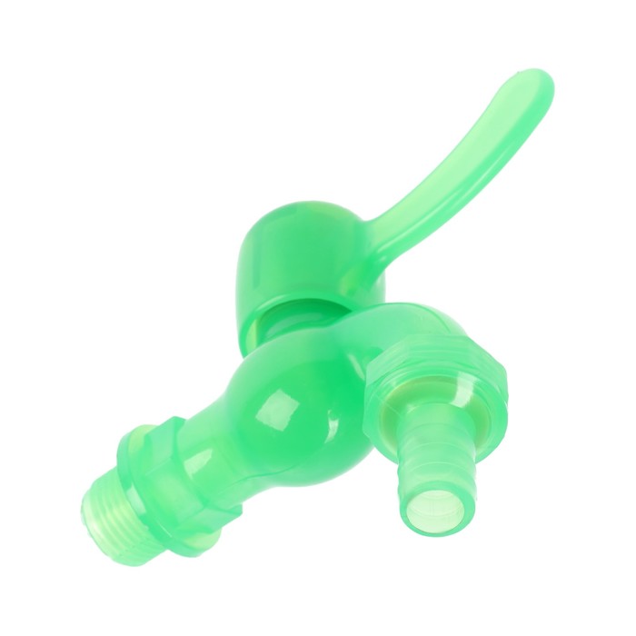Кран водоразборный ZEIN, со штуцером, с плоской ручкой, PP, зеленый
