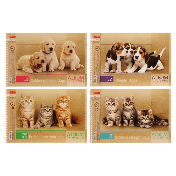 Альбом для рисования А4, 32 листа, на гребне, "Зверьё моё", обложка картон, блок 100 г/м², перфорация на отрыв, МИКС