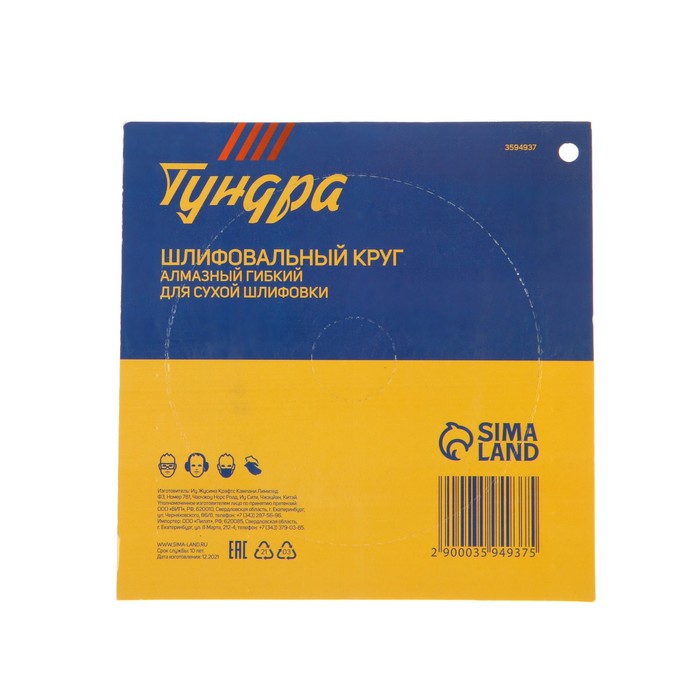 Алмазный гибкий шлифовальный круг ТУНДРА "Черепашка", для сухой шлифовки, 100 мм, № 5000