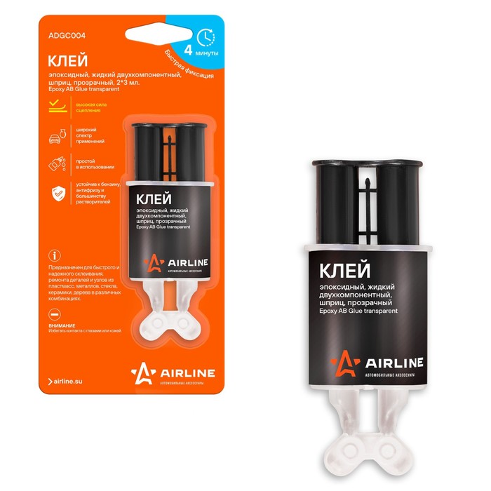Клей эпоксидный Airline, жидкий двухкомпонентный, шприц, прозрачный, 2х3 мл.
