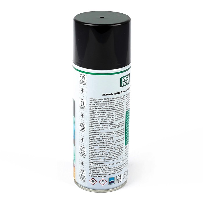 Эмаль алкидная универсальная REXTON, черная глянцевая, аэрозоль, 520 мл
