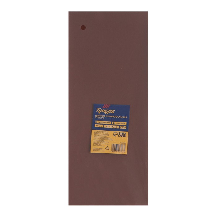 Шкурка шлифовальная в листах ТУНДРА, на бумажной основе водост., 115 х 280, Р600, 10 шт.