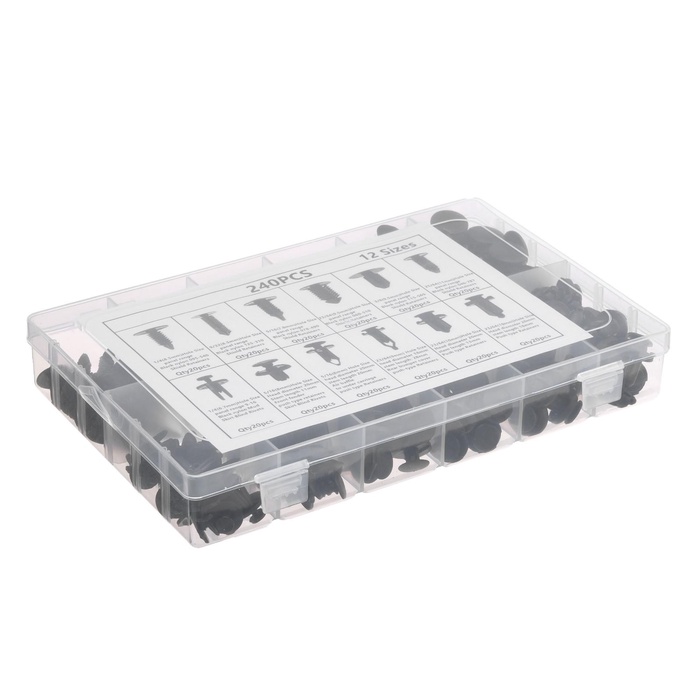 Клипсы и пистоны крепежные, 12 видов, набор 240 шт