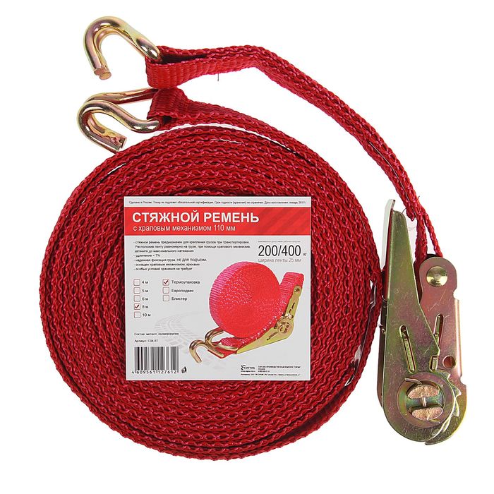 Стяжка груза с механизмом 110 мм, ширина ленты 25 мм, нагрузка 200/400 кг, длина 8 м