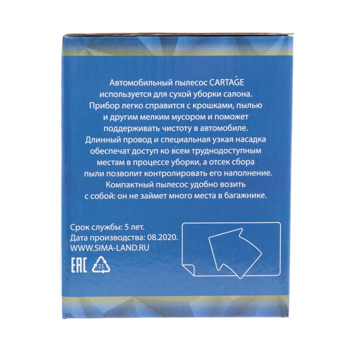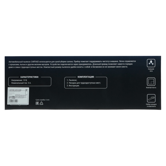 Пылесос автомобильный CARTAGE идеален для уборки салона автомобиля.