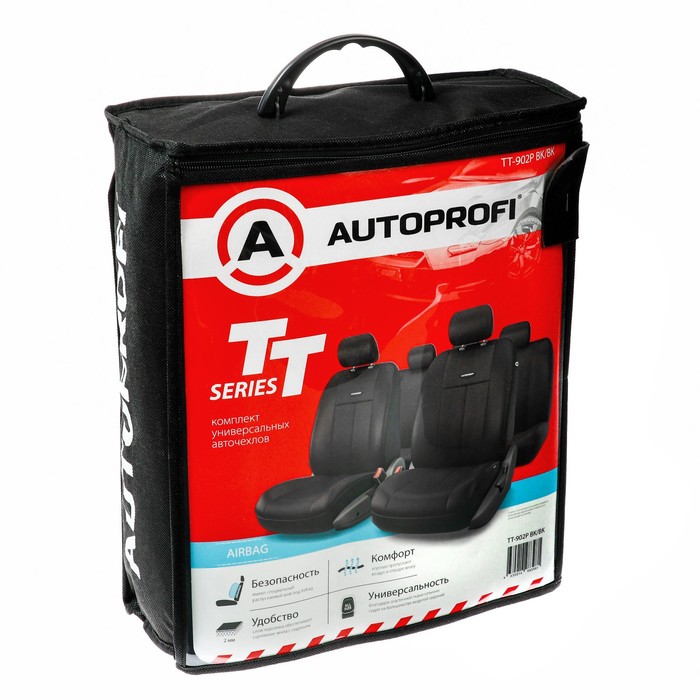 Автомобильные чехлы универсальные TT, полиэстер, 9 предметов, передний ряд, задний ряд, AIRBAG, черные