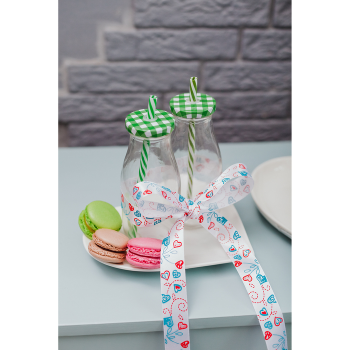 Набор банок стеклянных Доляна «Летняя прохлада», 2 предмета: 2 банки с крышками и трубочками 450 мл
