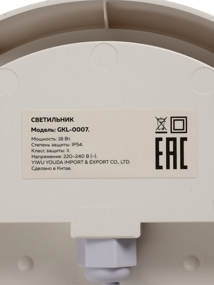 Светильник светодиодный, 18 Вт, IP54, 4000К, 220 В, круг, белый