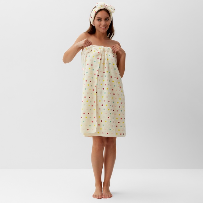 Набор для бани и ванной Этель "Конфетти", полотенце- парео 75*120 см+повязка