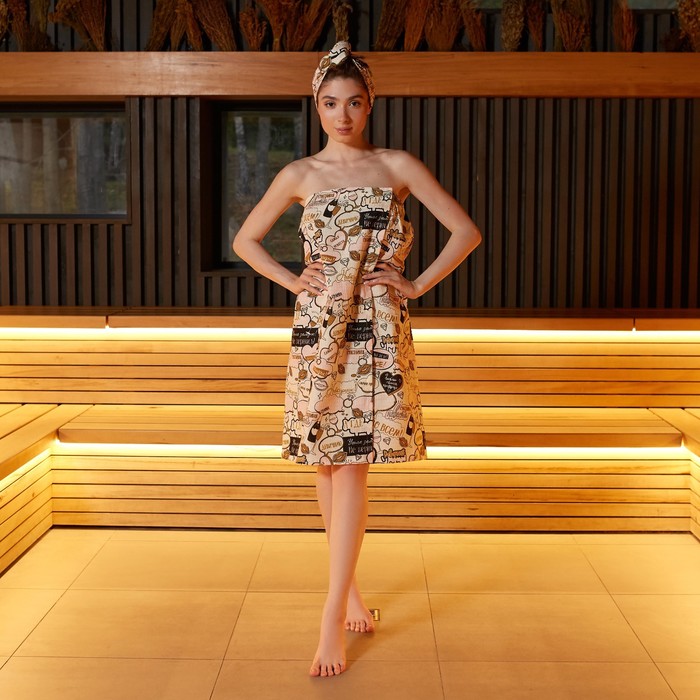 Набор для бани и ванной Этель "Бантик", цв коричневый: полотенце-парео 75*120 см + чалма