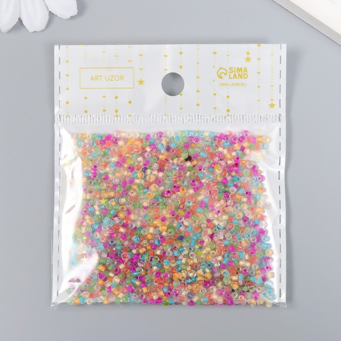 Бисер круглый размер 12/0 "Прозрачный с цветной серединкой" 20 гр