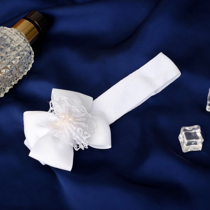Повязка для волос "Модница" бантик в цветочке, 10,5х6,5 см, белый