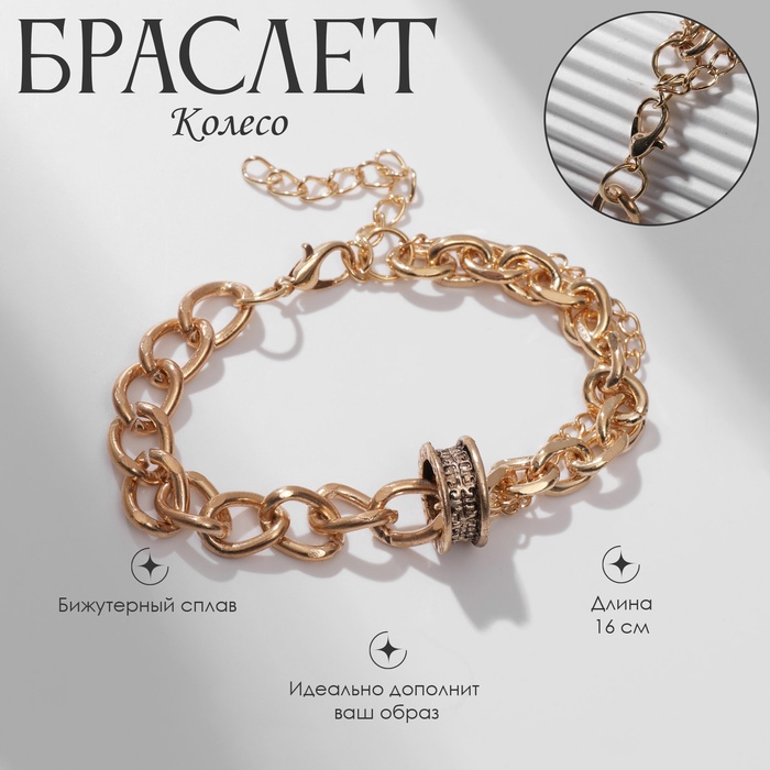 Браслет металл "Колесо" цепь, цвет чернёное серебро, L=16см