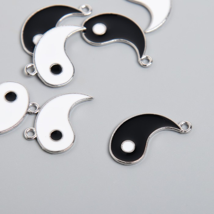 Декор для творчества металл, эмаль "Инь-ян" серебро набор 2 шт 2х2,2 см