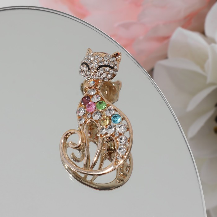 Брошь "Кошечка" с цветком, цвет МИКС (неделимая фас.12шт, цена за шт)