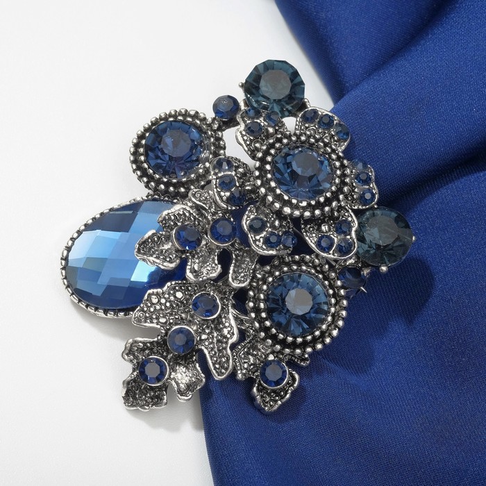 Брошь "Императрица" тьма, цвет синий в чернёном серебре