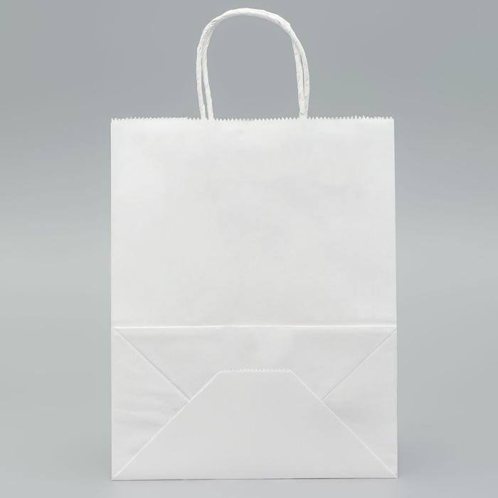Пакет крафт без печати, белый, круглая ручка 22 х 12 х 28 см
