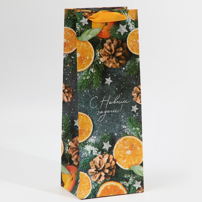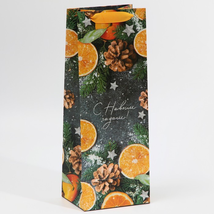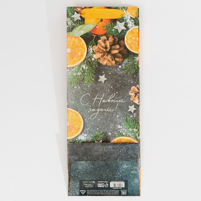 Пакет под бутылку крафтовый «Новогоднее настроение», 13 × 36 × 10 см