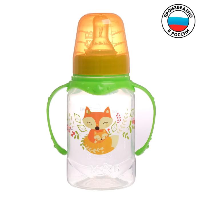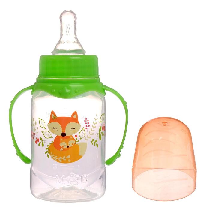Бутылочка для кормления «Лисичка Соня», классическое горло, с ручками, 150 мл, от 0 мес., цвет зелёный
