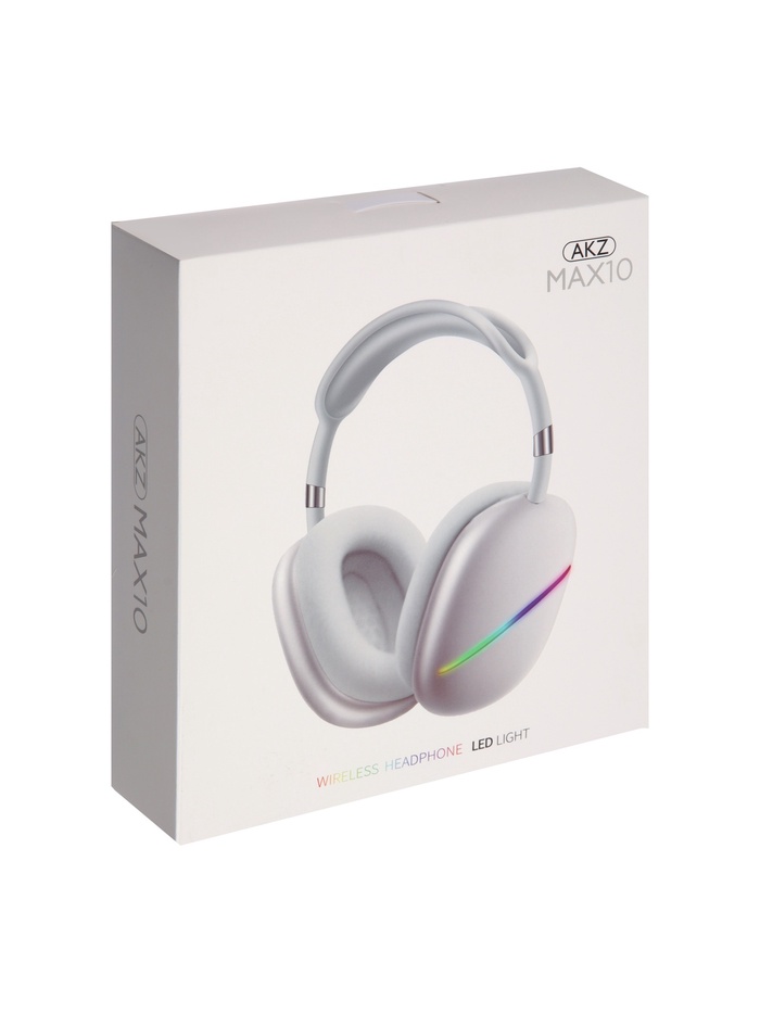 Наушники AKZ MAX10, беспроводные, полноразмерные, микрофон, подсветка, белые