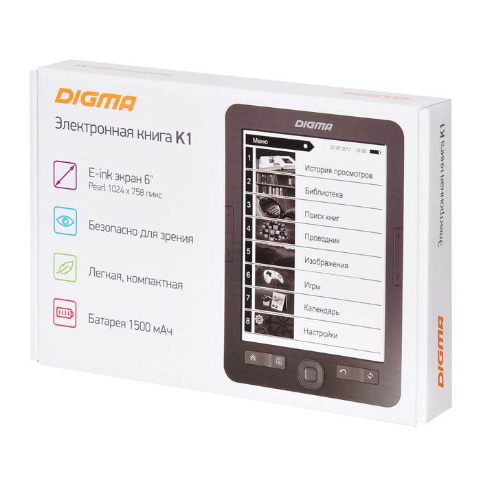<img src="https://cdn2.static1-/share/27175.jpg" alt="Электронная книга Digma K1."><img src="https://cdn2.static1-/share/27176.jpg" alt="Имеется поддержка большого количества форматов книг."><img src="https://cdn2.static1-/share/27177.jpg" alt="Встроенная память 4 Гб."><img src="https://cdn2.static1-/share/27178.jpg" alt="Батарея на 1500 мАч."><img src="https://cdn2.static1-/share/27179.jpg" alt="Множество преимуществ перед другими моделями.">