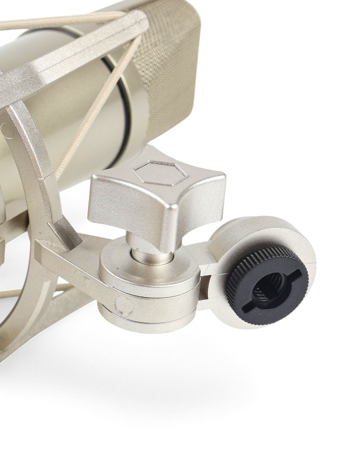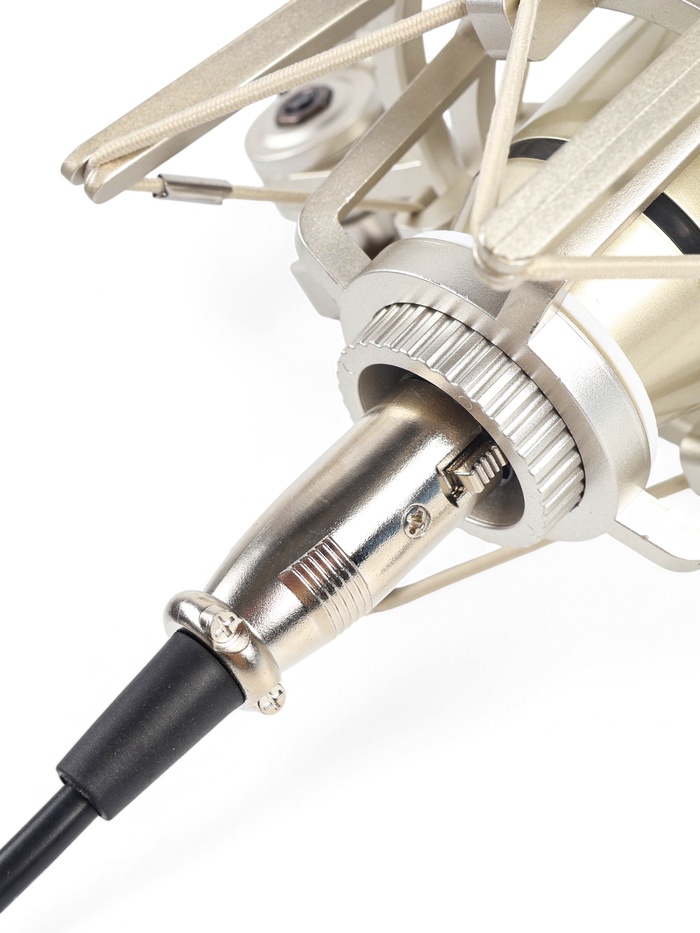 Микрофон конденсаторный Music Life золотой: кабель, ветрозащита, стойка