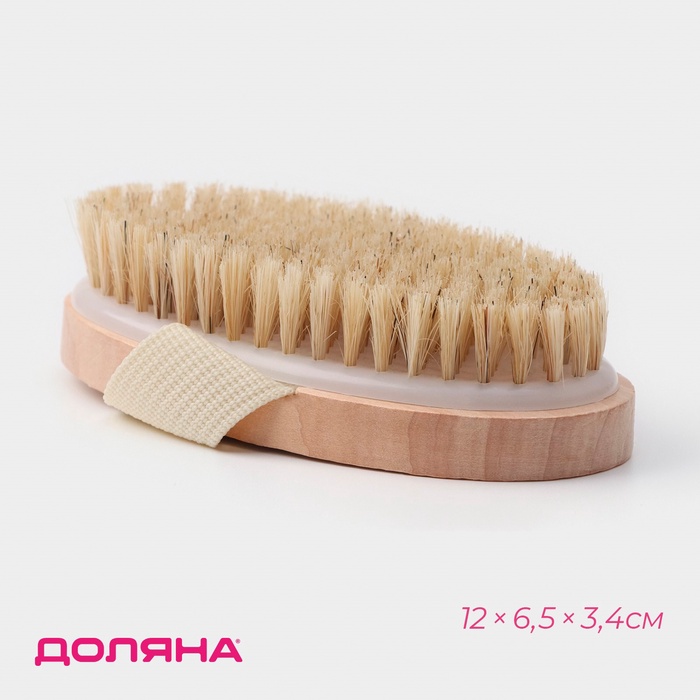 Щётка массажная для тела Доляна, с ручкой и массажёром, натуральная щетина