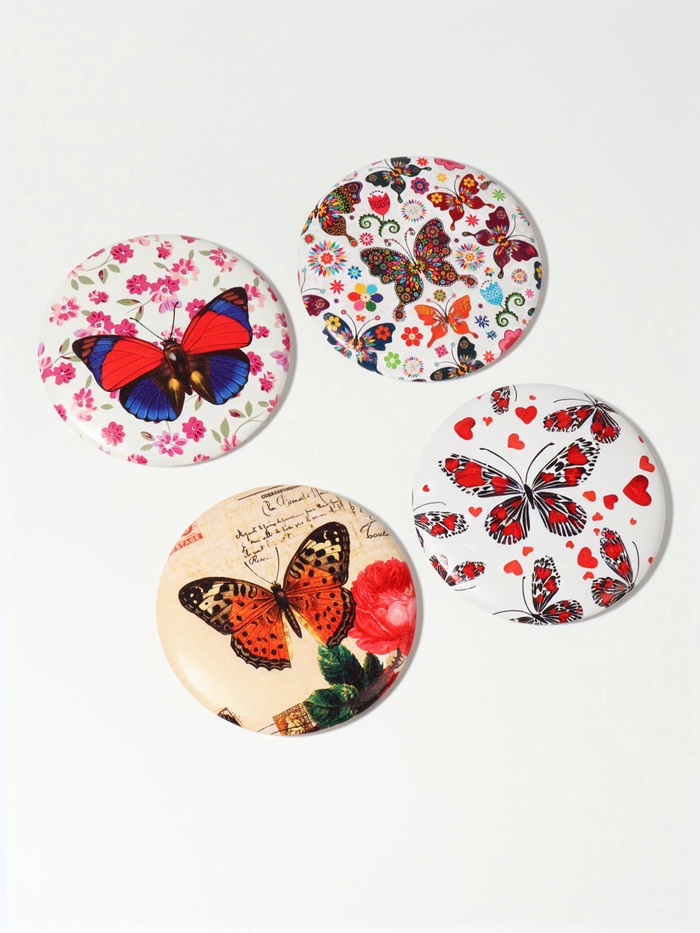 Зеркало «Бабочки», d 7,5 см, искусственная кожа, рисунок МИКС