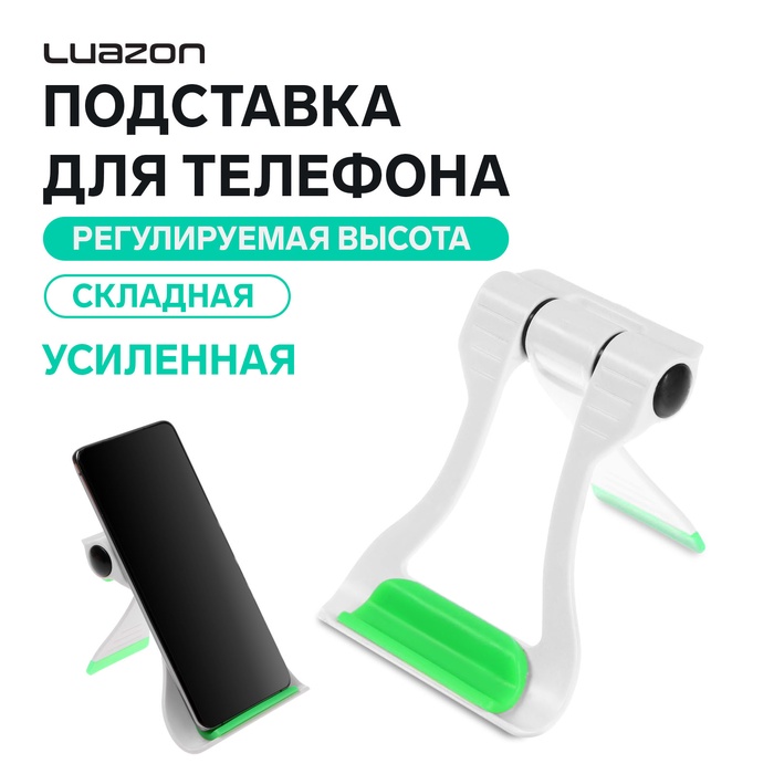 Подставка для телефона LuazON, складная, усиленная, регулируемая высота, бело/зелёная