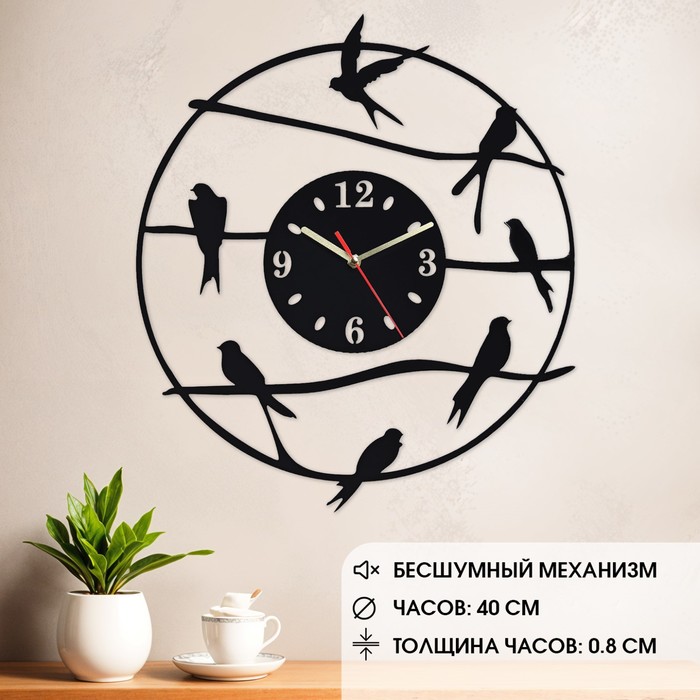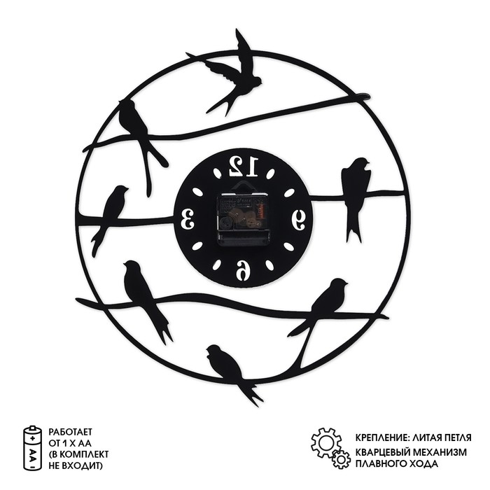 Часы настенные из металла "Птички", бесшумные, d-40 см, АА