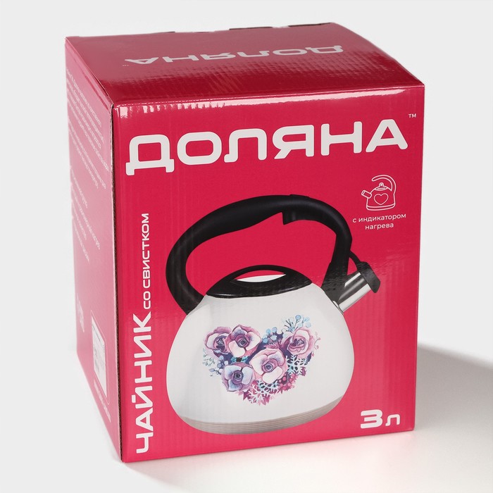 Чайник со свистком из нержавеющей стали Доляна «Сердце», 3 л, с индикатором нагрева