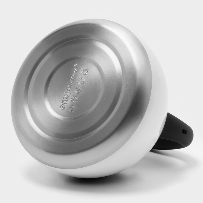 Чайник со свистком из нержавеющей стали Доляна «Мрамор», 3 л, фиксированная ручка, цвет хромированный