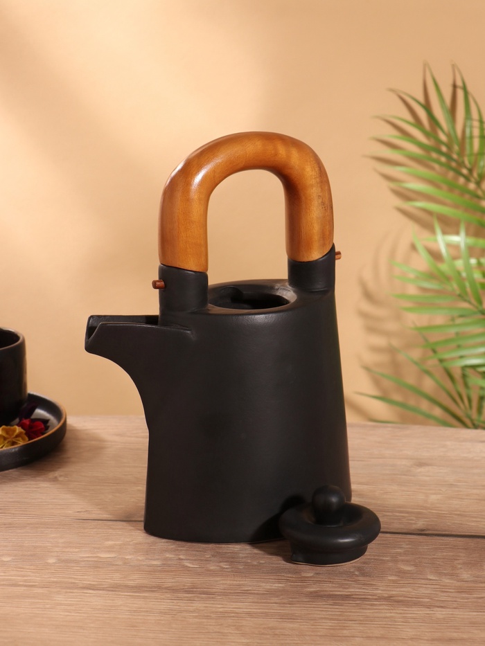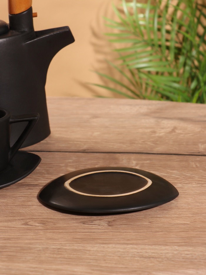 Набор для чаепития «Старинный обычай» керамический, чёрный, чайничек + 2 чайные пары