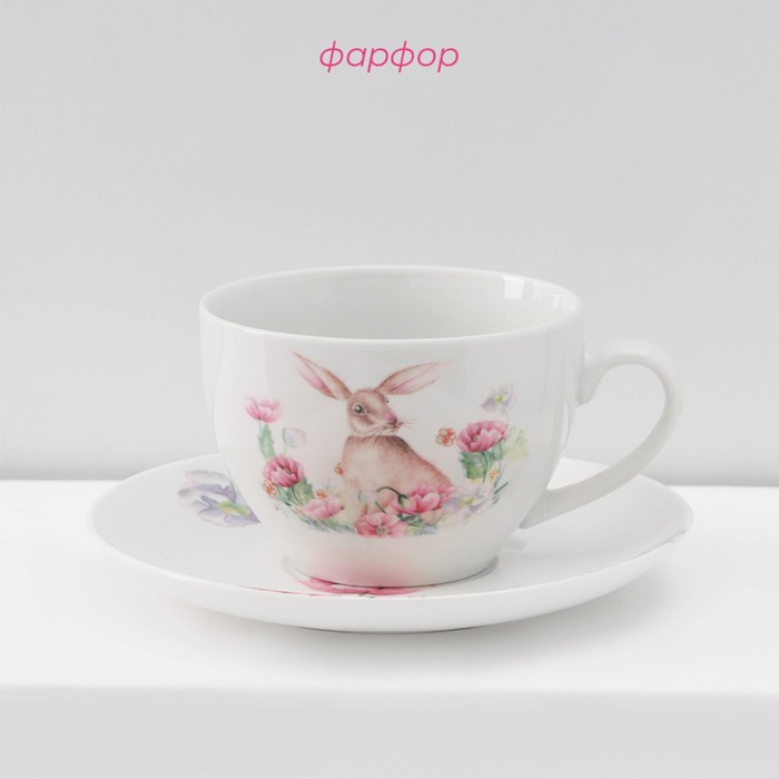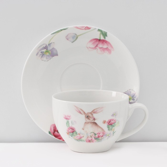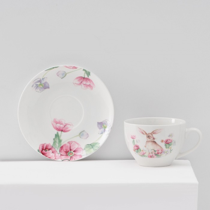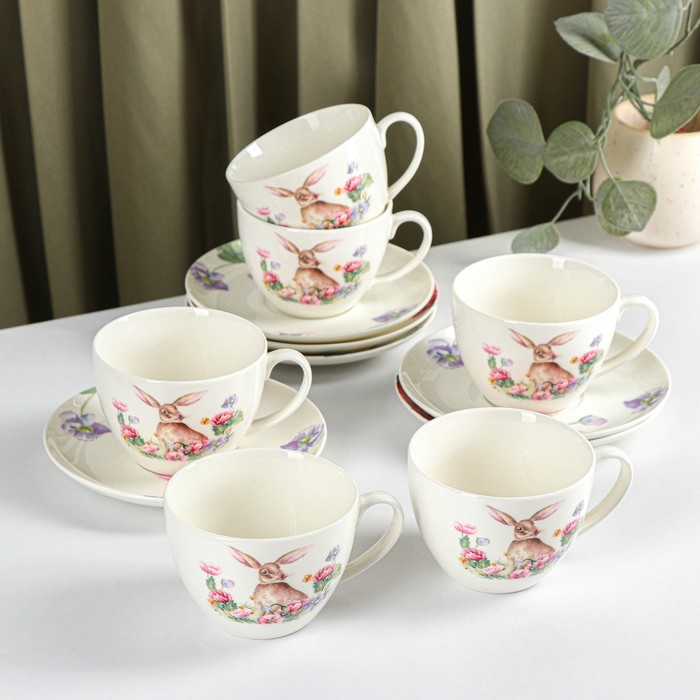 Сервиз фарфоровый чайный Доляна «Зайка», 12 предметов: 6 чашек 250 мл, 6 блюдец d=15 см, цвет белый