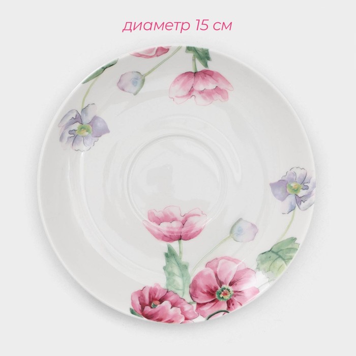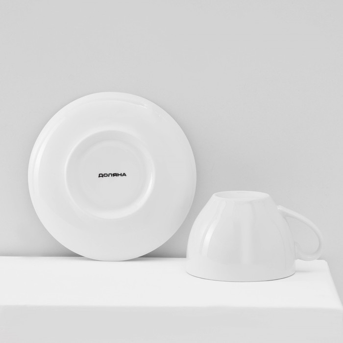 Сервиз фарфоровый чайный Доляна «Лаванда», 4 предмета: 2 чашки 220 мл, 2 блюдца d=14,2 см, цвет белый