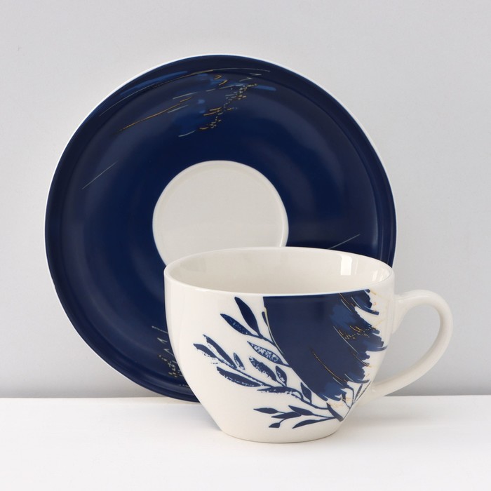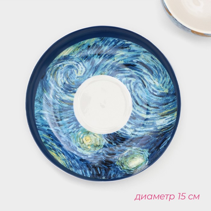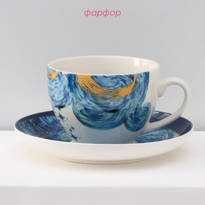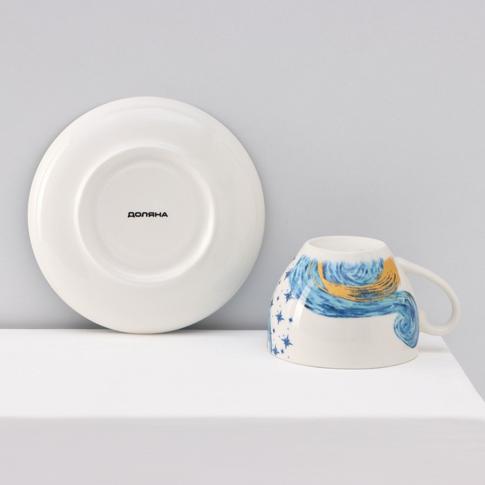 Сервиз фарфоровый чайный Доляна «Звёздная ночь», 12 предметов: 6 чашек 250 мл, 6 блюдец d=15 см