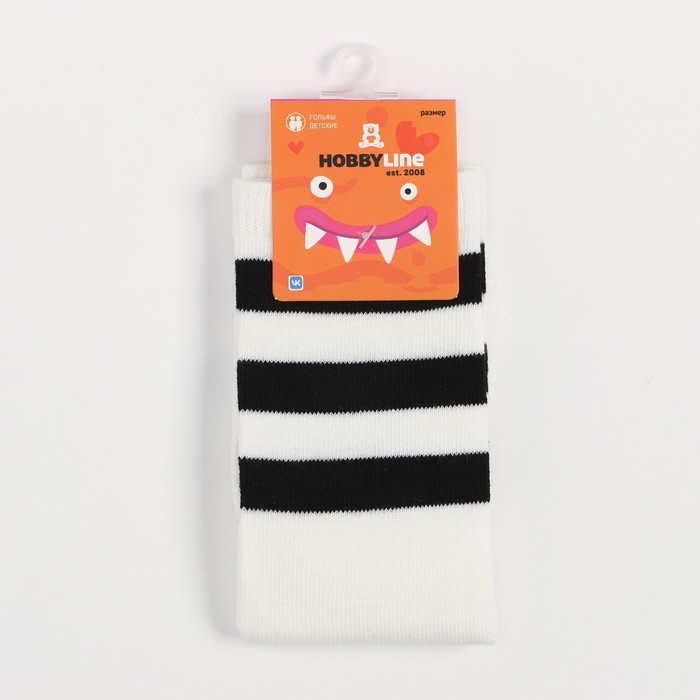 Гольфы детские, цвет белый с чёрными полосками, размер 14-16