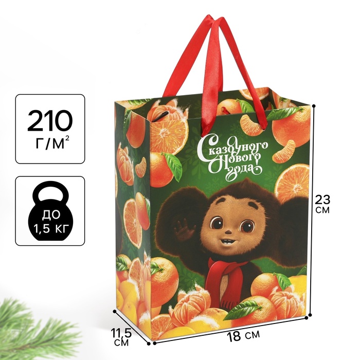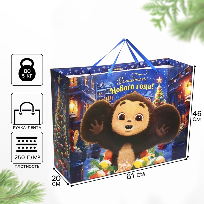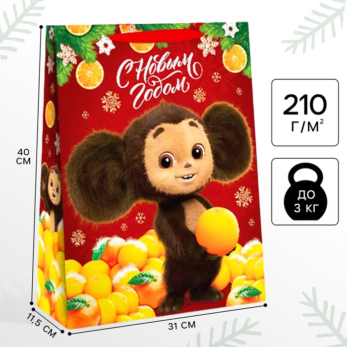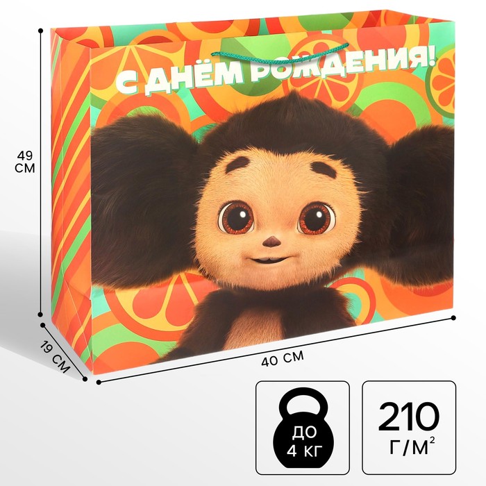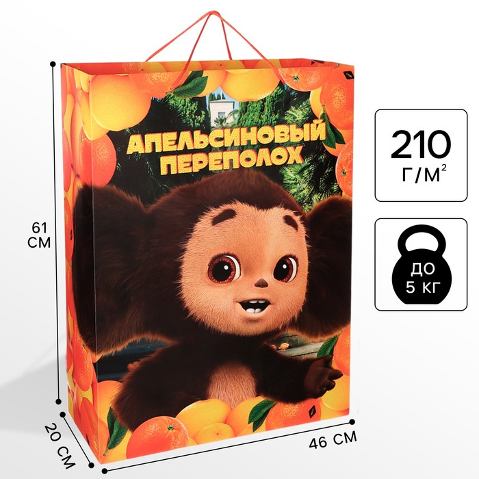 Пакет подарочный, "Апельсиновый переполох", 46х61х20 см, Чебурашка