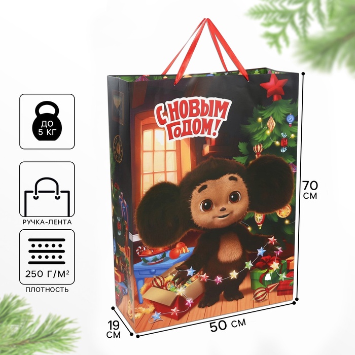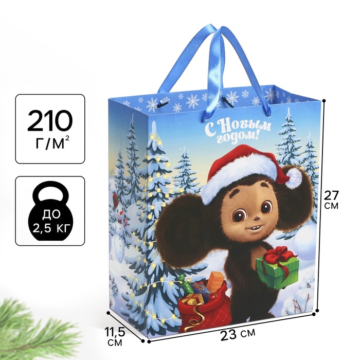 Пакет подарочный "С Новым годом!", 31х40х11.5 см, упаковка, Чебурашка