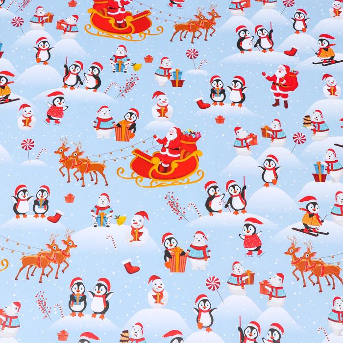Бумага упаковочная глянцевая "Рождество на Северном полюсе", 70 х 100 см,1 лист