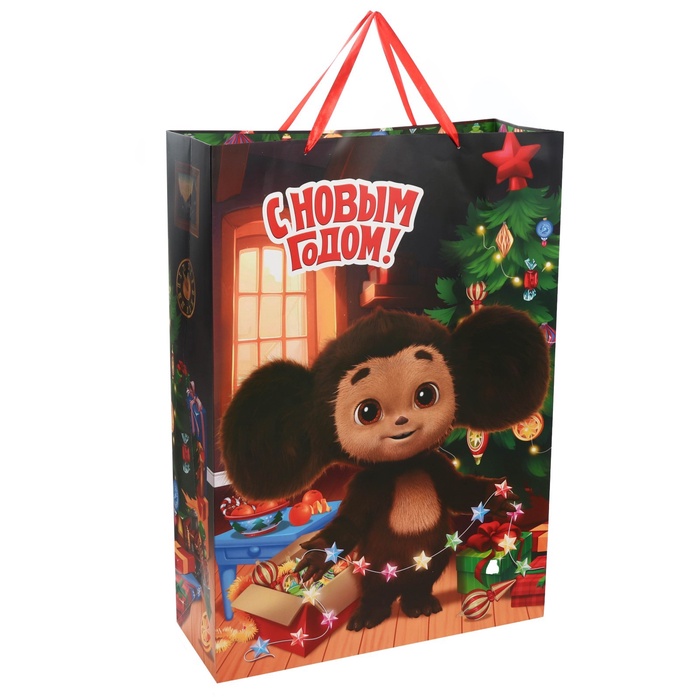 Новый год. Пакет подарочный, 70х50х19 см, упаковка, Чебурашка