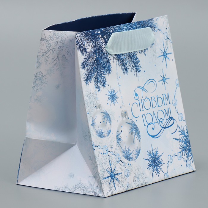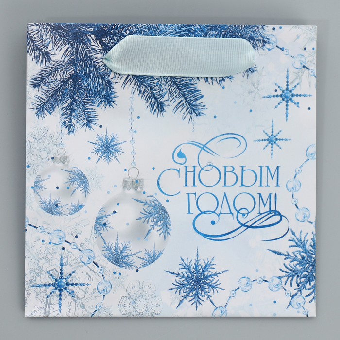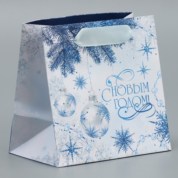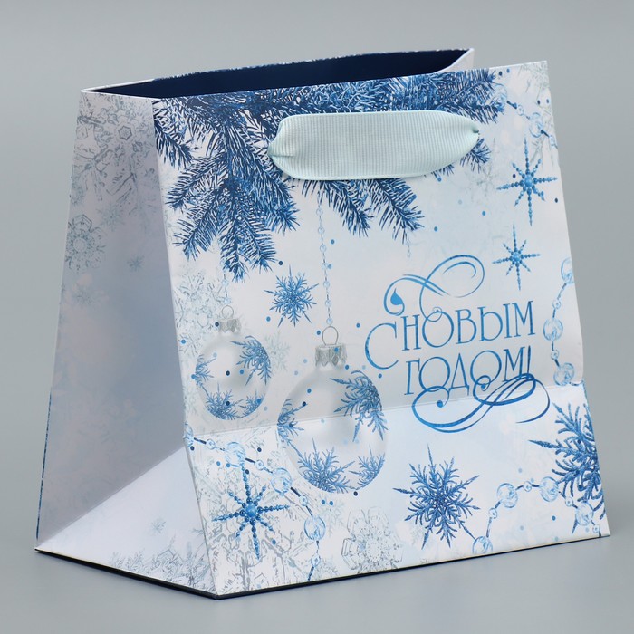 Пакет ламинированный квадратный «Снежинки», 14 × 14 × 9 см