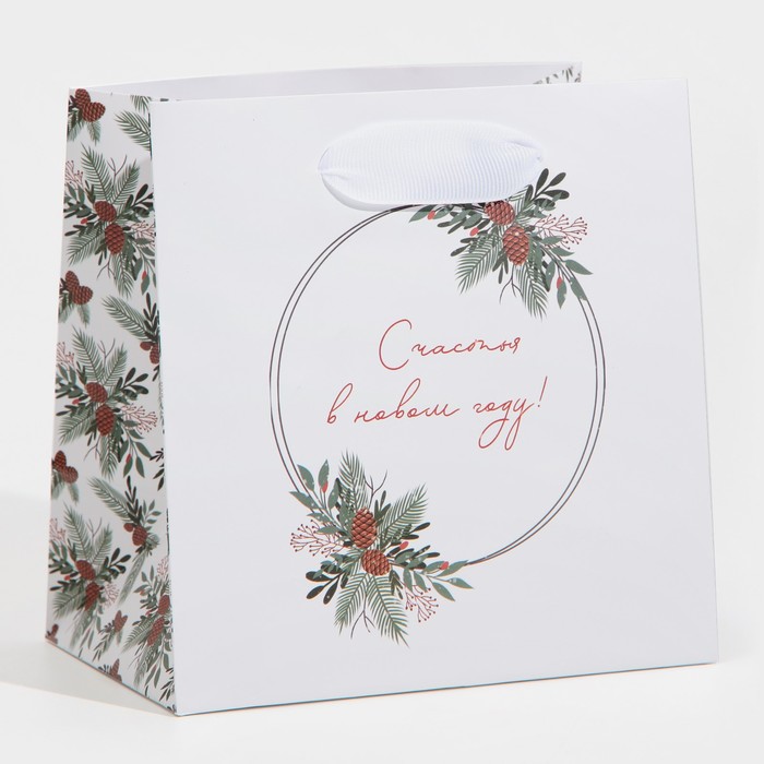 Пакет ламинированный квадратный «Зима», 14 × 14 × 9 см