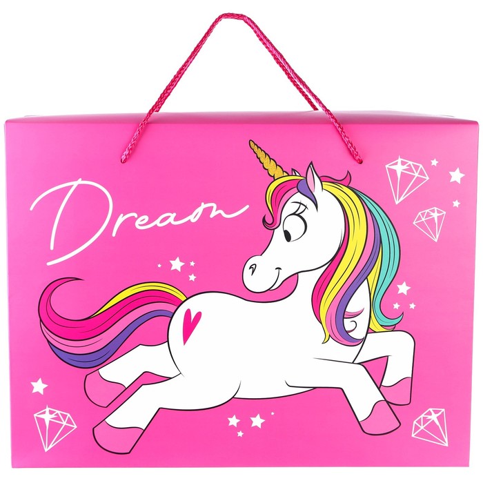 Пакет-коробка, 40 х 30 х 15 см "Dream", Минни и единорог