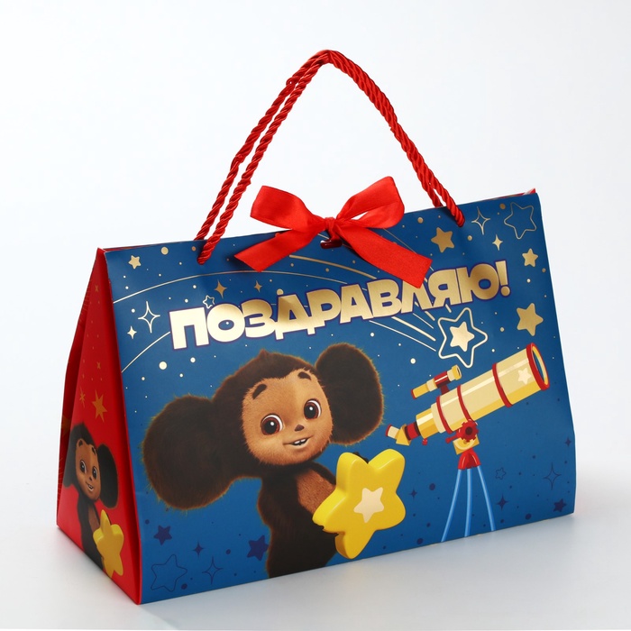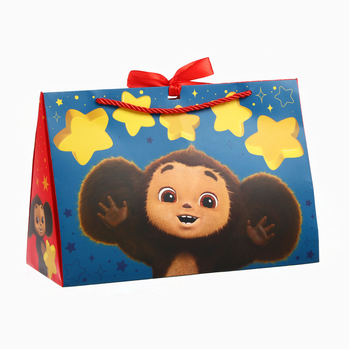 Пакет-коробка с тиснением, Чебурашка, 30х20х12 см
